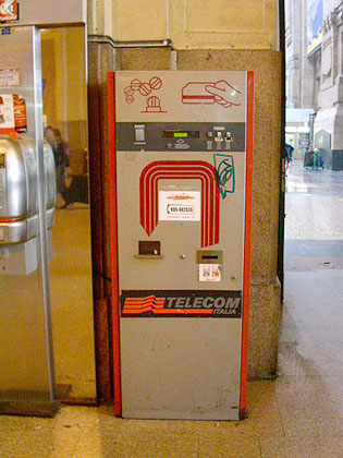 これはテレホンカード販売機です 5euro, 10euroのカードがあったような気がします 初めてイタリアにきた時はコインで電話しましたが コインの使えない電話機もあるので注意 この機械はStazione Centraleでしか見たことがありませんね・・・ 他の駅にもあるのかな?