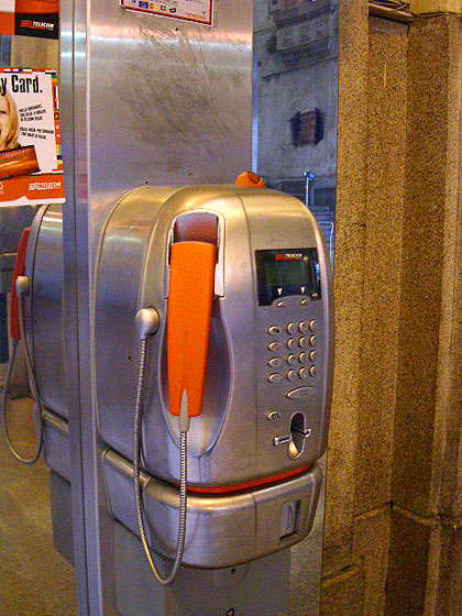 これが電話機です このタイプはテレホンカードとコインが使えます 電話番号を打ったら'OK'ボタンを押しましょう