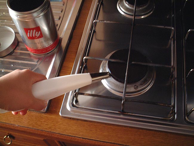 うちのコンロには自ら火を起こすという機能がありません 日本のコンロには「カチッ」と電気的に火花を起こす機能がついていますが こちらではその作業は別の道具を使ってしなければいけないようです 最初に大家さんから部屋の使い方の説明を受けているとき 彼らはマッチでそれをしようとしていたので これは面倒だなぁ と思いましたが やはりそれ用に道具が売っていました