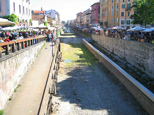 今は使われなくなった運河 運河沿いの道にたくさんのお店がでています