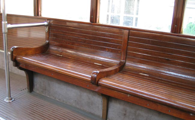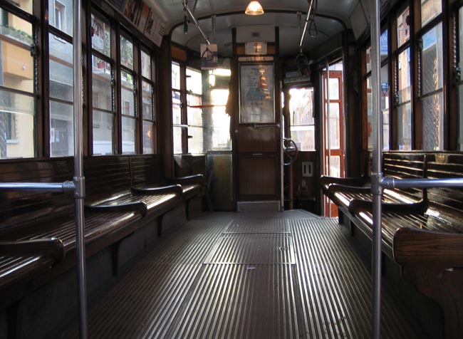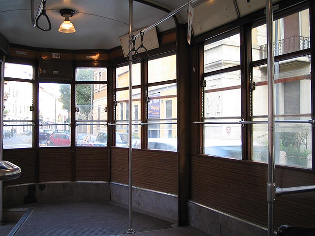 MILANOのTram Linea 1(トラム1番線)に使用されている車両の車内写真です