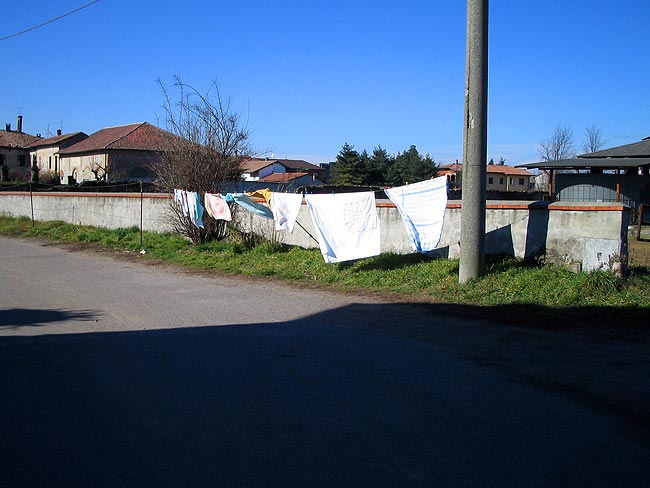 | 2005年2月13日 Riozzo 日曜日 FUORI MILANOのRIOZZO(:リオッツォ)へ行ってきました METRO LINEA GIALLO の終点 SAN DONATO からAUTOBUSで20分程 のどかな牧草地帯となっているRIOZZOを散歩しました ![]() 気持ちいい天気の日曜日 RIOZZOに住む友人を訪ねました これはその友人宅の隣の建物の中庭の写真 壁の色がなんともいい感じですね ![]() 少し歩くと牧場がありました ここはLATTE MILANOというミラノでは多く飲まれている牛乳を作っているところのひとつだそうです ![]() その脇の道路に干されていた洗濯物 ![]() 牧場から離れてブラブラしていたら ! 壁にトカゲが よく見るとこの壁には他にもいっぱいトカゲがいて いい住処になっているようでした ![]() 散歩のあと 友人の手厚いおもてなしを受け 楽しませてもらった後 夕方のとてもきれいな空の下帰ってきました 日曜日だったため SAN DONATO までのバスの最終はなんと18:30 リストへ戻る |