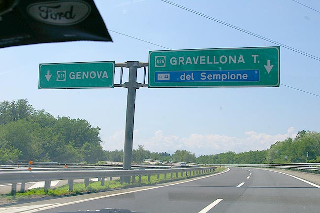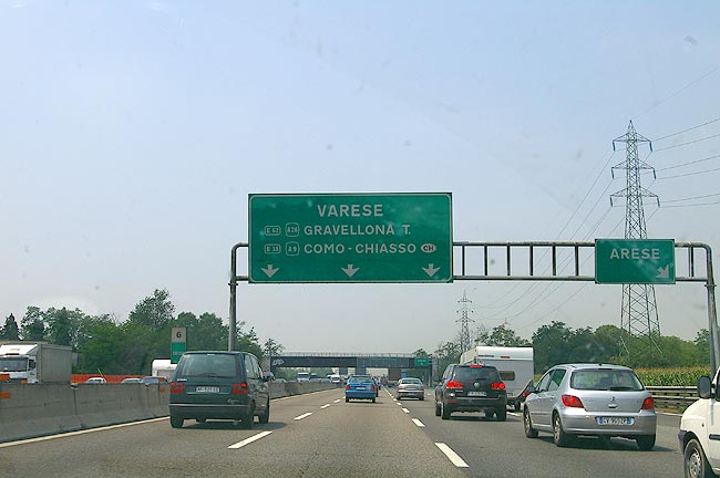 さあ でかけましょう 今日も暑いです,,,, Tangenziale(:タンジェンツィアーレ :環状道路)に乗りAutostrada(:アウトストラーダ :高速道路)A4に入りすぐにA8へ 途中まではマルペンサ空港へ行くのと同じです