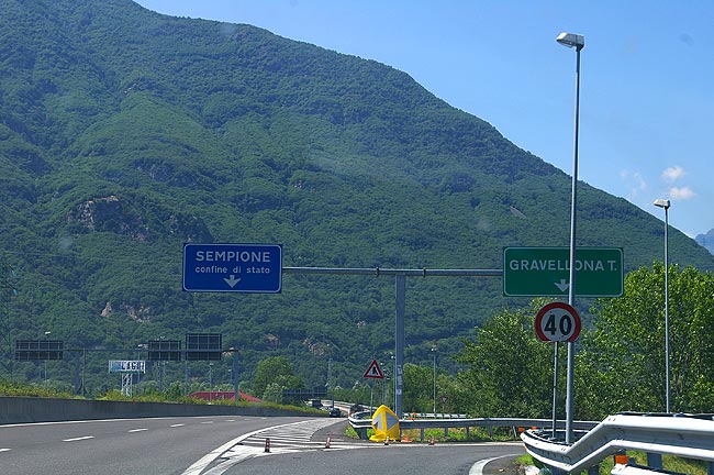 GRAVELLONA T.出口 ここを出ないでSEMPIONE(:センピオーネ)方向へ行くと "[Le foto][旅行]スイス鉄道の旅"でも通ったDomodossola(:ドモドッソーラ)を通りスイス国境です そしてSEMPIONEの先はスイスのBrigへつながっています