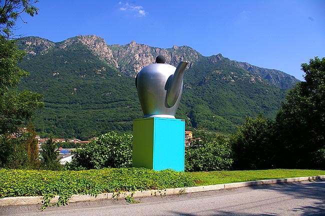 敷地内へ入る道のところにあった巨大なポット ここがALESSIの本拠地であることを再確認させられます
