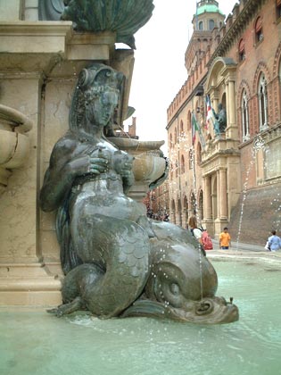 Bolognaの市庁舎前の噴水にあったエログロな女神像