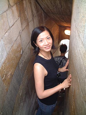 このくらい狭い階段を人数制限をして一方通行で上り下りします