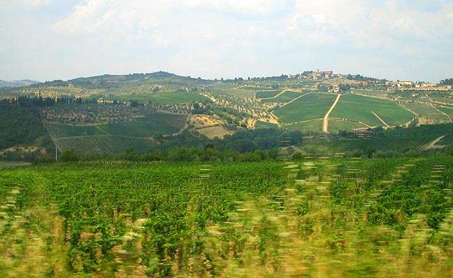 Toscanaのぶどう畑の丘をはしりSienaへ