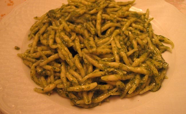 Genovaで食べるTrofie al Pesto(Genoveseの現地名称) パスタはひねったような形をしたTrofie