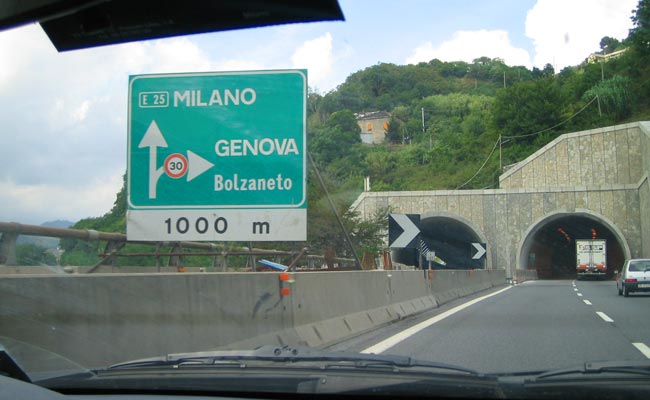 Auto strada A7を北上しMILANOへ Genovaから何十キロかは山の間を抜ける道でカーブやトンネルが多いですが