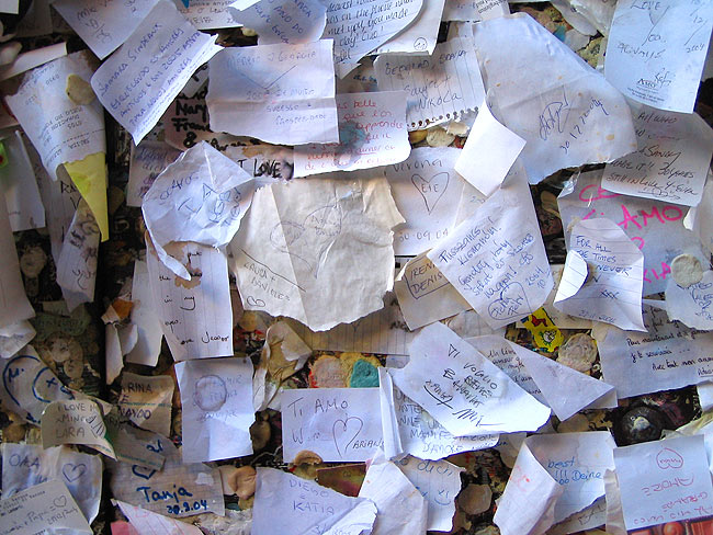 気になるこの壁一面にガムで貼られた紙は 恋人達の祈りや 片思いに悩む人達の思いでした