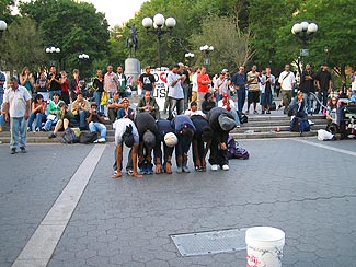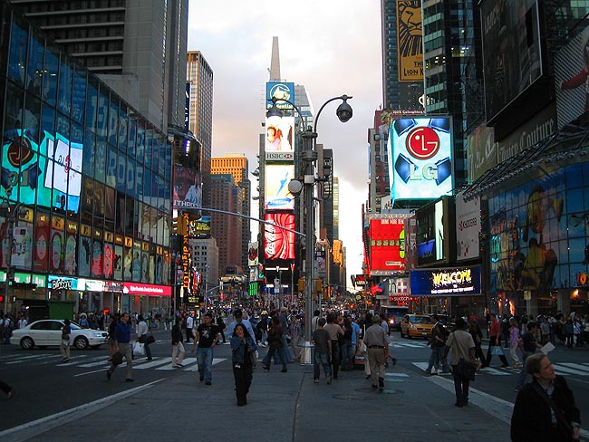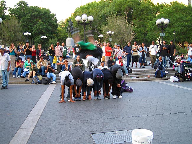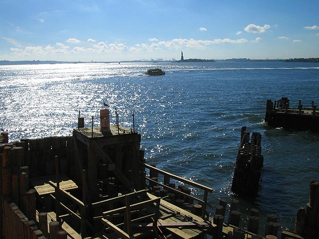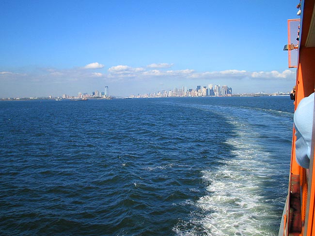 | 2005年9月28日〜10月6日 Numero.2 秋のNEW YORKへ 友人に会うため 秋のニューヨークを訪れました その二 ![]() 明けて10月2日 日曜日 Queensboro Bridge(:クィーンズボロ・ブリッジ)を通りかかると 交通規制が始まり 何やら向こう(イーストリバー対岸)から大型バイクに跨がった男達が大挙してやってきました(正確に言うと 後部座席に女性(奥さんか彼女)を乗せているバイクも多くいました) 調べてみると退役警察官の大行進だったようです ![]() 歩行者天国になっていたLexington AV(:レキシントン・アベニュー)に戻って しばしストリートマーケット散策をしました ![]() その後 ちょっと休憩で座ったCentral Parkで見かけたリス! 人には慣れておらず 懸命な妻の友好的な接近も実らず遠くからしか撮影できませんでした ![]() リスを見て 公園を出るとすぐ前はあの有名なアパートです 1980年12月8日 John Lennon(:ジョン・レノン)は このDakota Apartments(:ダコタ・アパート 1884年 Henry J. Hardenbergh(:ヘンリー・J・ハーデンバーフ)設計)のエントランスで凶弾に倒れました 夜はOFF-BROADWAY(:オフ・ブロードウェイ :マンハッタンにある100〜300席程の小さな劇場での公演)の"BLUE MAN GROUP"を観ました もうほんとうにほんとうに面白かったです NYに行かれた際にはぜひとも観てみてください (現在BERLINとLONDONでも観れるようです)![]() Astor Place Theatreにて ![]() 明けて10月3日 月曜日 China Town(:中華街)の八百屋さんにて かなり種類も豊富でミラノの中華スーパーもこのくらいの品揃えだったらなぁと思いました ![]() China Townには漢字があふれていました ![]() さて やっぱりNYといえば自由の女神だね ということで マンハッタン島のお隣 スタテン島へ行くフェリー(無料!)に乗り スタテン島への途中から女神様を見ることにしましょう ![]() Battely Park(:バッテリー・パーク)横にあるスタテン島行きフェリー乗り場から乗ります 船に乗り込むと既に自由の女神が見えていました ![]() 出航です 船から左に見えるのはBrookln Bridge(:ブルックリン・ブリッジ)です ![]() 自由の女神へ最接近したときの写真です 昔 'アメリカ横断ウルトラクイズ'という番組を熱心に毎週観ていた事を思い出しました ![]() 振り返ると まるで海の上にビルが生えているかのようなマンハッタン島 マンハッタン島を出てスタテン島まではだいたい20分程 到着してからすぐに帰りの船に飛び乗りました ![]() マンハッタン島へもどる帰りの船上より ![]() リス! 昨日に続きまたもや出会いました これはフェリーを降りてすぐのバッテリー・パーク内にて カワイイですねー 触りたいです ![]() 夕方のUnion Square(:ユニオン・スクエア)でJAZZYなHIP HOPで踊っていた若者達 これは みんなで体の柔らかさを競っているわけではなく,,,,, ![]() 仲間の一人が写真右に待機しており 走ってきて一回転しながら飛び越える という技の披露でした お見事! さて こちらは夜も近付いたTimes Square(:タイムズ・スクエア)です![]() ![]() 鮮やかな発色と滑らかな動きの看板は 見た目の派手さと共に技術的にも見るべきものがありました カップヌードルのこの看板は日本でもお馴染みですよね この後 私たちは Chelsea(:チェルシー地区)のThe Kitchen(West 19th Street Between 10 & 11Ave)というギャラリーで 日本人アーティストの黒田征太郎さんの"Pikadon(:ピカドン)"と名付けられたライブ・ペインティング・パフォーマンスを観に行きました Numero.1へ戻る Numero.3へつづく リストへ戻る |