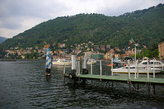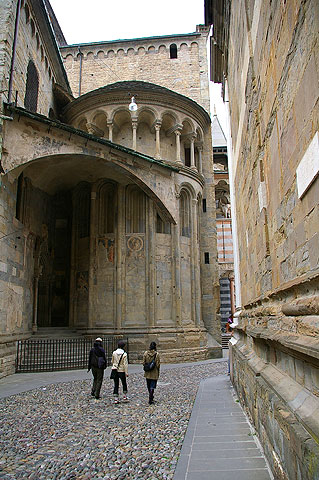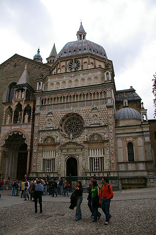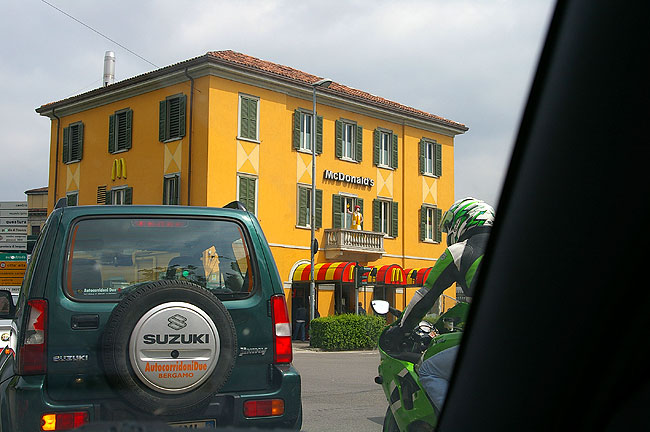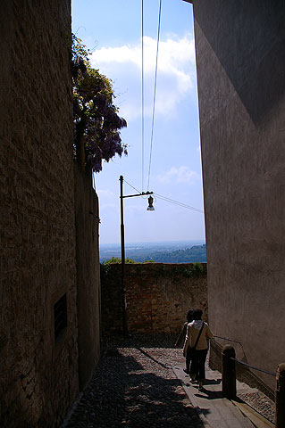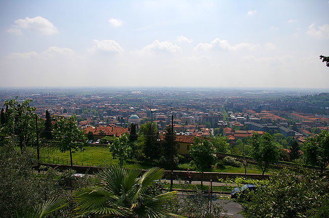 | 2006年5月1日 Bergamo - Como すっかり暖かくなった今日この頃 日本から我が家に滞在中の妻の妹とその従姉(いとこ)と一緒にBergamo(:ベルガモ)とComo(:コモ)へドライブへ行ってきました ![]() Milanoの自宅から高速道路を使って1時間弱 お昼前にBergamoへ到着しました 写真は列車で到着した人々をBergamo駅前でまず陽気に迎えるアメリカのあの方 ![]() 今日はメイデー 休日です 月曜日ですがBergamoのCitta Alta(:チッタ アルタ :旧市街)へ通じる道は渋滞です ![]() 車を停め 街へ入ります 見慣れているはずのこの街の風景ですが 毎回感動してしまいます ![]() 緑の雨戸がきれいですね ![]() 街の中心へ向かいます ![]() BergamoのCappella Colleoni(:コッレオーニ礼拝堂)のすばらしいファサード ![]() Piazza Vecchia(:ピアッツァ ベッキア) 街中心の広場です 空もだんだん晴れてきました ![]() Citta Bassa(:チッタ バッサ :新市街) からのFunicolare(:フニコラーレ :ケーブルカー) が到着する駅(写真右の建物)前広場 ![]() しばし散歩 ![]() ![]() 建物の間の細い道を通って見えてきた広い空 街の端まできたようです あ ふゎ と花の香りがします ![]() 見上げると藤がきれいに咲いていました ![]() 街の城壁からCitta Bassaを望む ![]() 城壁に咲いていた花 ![]() 先ほどから '城壁' という表現を使ってしまっていましたが こう見るとまさに街全体がお城のようなんですね さてBergamoを離れ Comoへ向かいましょう Bergamoから快適な国道を車で1時間ほど行くと避暑地Comoへ着きます 国境の街Como ここより北はSvizzera(:Switzerland :スイス)です ![]() ComoはBergamoよりもさらに混んでいました 渋滞渋滞で 車を停めるところを探すためにグルグル街を1〜2周してしまいました ![]() そんなComoで私たちを迎えてくれたカモ どこかへ急いで向かっているようでした ![]() Lago Como(:コモ湖)の港に伸びる桟橋 ここに著名人達のボートやヨットが停泊されているんですね いつかは私も......(笑) ![]() Comoの市庁舎です 銅板がはられたドームが美しいですね この写真 空は明るいですが 実は夜の7時を回ったところでした お腹も空いてきたのでMilanoに戻ることにしましょう リストへ戻る |
