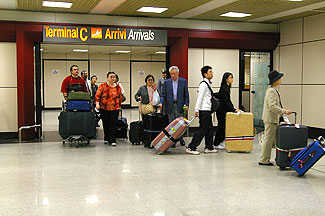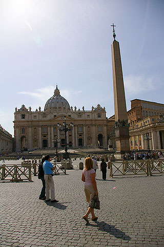 | 2006年5月17日〜22日 ToscanaとRoma Numero.2(5月18日・19日・20日) 日本から到着する両親を迎えるべく Roma Fiumicino空港へ来ました ![]() 2003年以来のRomaです 思えばその時が私にとって 初めてのイタリアでした まさかその後その国に住む事になるとは思ってもみませんでした そんな事を考えながら 滑走路が見えるBarで時間をつぶしていると JAL機のランディングが見えました ![]() 5月18日 18:45 JL409便は ほぼ定刻の着陸です(定刻は18:40) ![]() 19:22 入国審査もバゲッジクライムもスムーズにいったようで 思っていたよりも早くゲートをでてきました この後 ローマ市内のホテルに直行 明日からに備えてすぐに休むことにしました ![]() 明けて5月19日 まず ホテルから近いTermini駅(:テルミニ駅 TERMINALの語源とも言われる駅)へ散歩しに行きました ![]() 4年前に来た時と様子がずいぶん違いました どうもサイン計画などを新しくしたようですね 構内はとてもきれいになっていました 今日はこれから ローマの要所を回っていきます ![]() まずはColosseo(:コロッセオ)です 西暦75年に建設が始まり 80年から使い始めたそうです(Wikipediaより) ![]() Foro Romano(:フォロ・ロマーノ) 何層にも遺跡が存在しているらしく 現在見えているものの下にも未だ数多くの古代の記憶が発掘を待っているそうです ![]() Foro Romanoに咲く赤い花 妻と母はここで四葉のクローバーを発見! ![]() La Bocca della Verita(:真実の口) かの有名な口です みんな並んで順番に記念撮影です ![]() この日は暑く すでに汗だくになってきていましたが もう一踏ん張りで Citta' del Vaticano(:ヴァチカン)へやってきました ![]() おそらく世界で一番豪華な教会でしょう 装飾品のひとつひとつがすごいですね 観光客の数もすごかったです ![]() さて 一日歩いて疲れました… ホテルでひと休みしたら晩ご飯です 今日は何を食べましょう、、 考えたあげく 私が食べたかったという理由で 和食屋さんに行ってみる事にしました 行ったのは六甲というお店 ホテルから近かったので歩いていきましたが その途中の風景が上の写真 こうして見るとRomaは坂の街なんですね 遠くに見えるオベリスクがきれいでした ![]() 明けて5月20日 今日も晴天です 今日 午後にはRomaを発ちSienaへ向かいます それまでまたしばし市内観光 まず来たのは ここ スペイン広場(:Piazza Spagna) 階段に座ってジェラートをペロリ とはしませんでしたが 映画のワンシーンを思い浮かべました ![]() そしてもちろんFontana di Trevi(:トレヴィの泉)にも行きました(写真は2枚を1枚に合成したものです) ![]() ここで驚いたのは 上の写真のおじさん このおじさん 肩からひもにつながった家庭用のプリンターを下げており デジカメで撮ったデータをその場でプリントアウトして売る ということをしていました 一昔前だったらポラロイド写真を売っていたのでしょうが 時代に適応していますね! すごいです さて 駆け足でしたがRomaを見て回りました Romaは 街中すべてが遺跡だらけで やはりすごいところです まだまだ見たりませんが そろそろ今日の宿地 ToscanaのSiena(:シエナ)へ向かうことにしましょう <-- Numero.1へ戻る ・ Numero.3へ続く --> リストへ戻る |