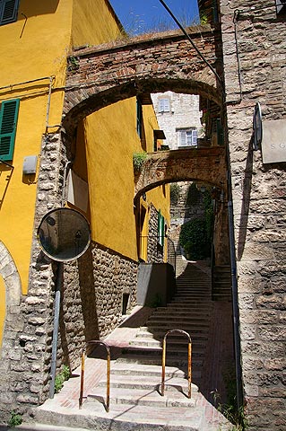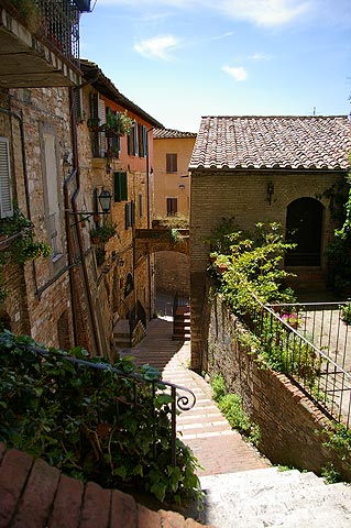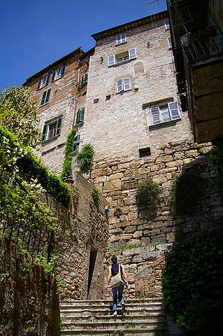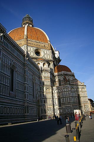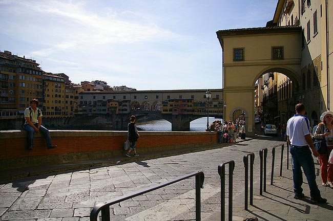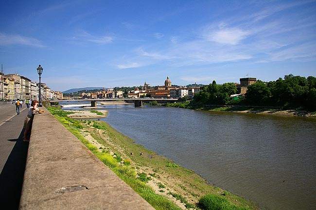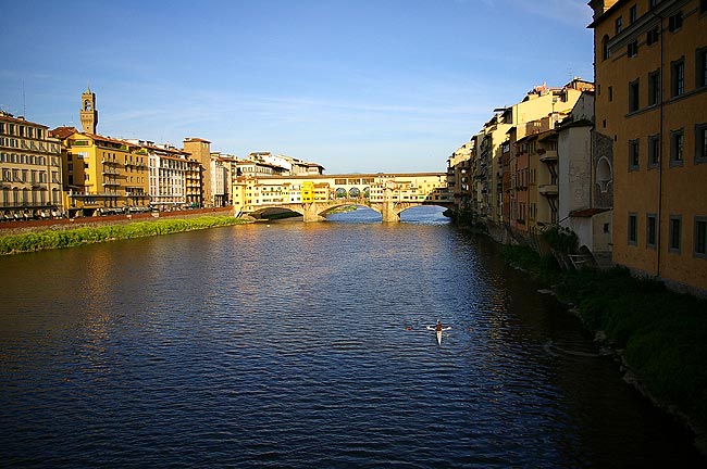 | 2006年5月17日〜22日 ToscanaとRoma Numero.1 (5月17日・18日) 5月18日から2週間 私(管理人)の両親が東京から遊びに来ました そして おそらく1年で一番気持ちのいい5月のイタリアを案内することにしました 今回の両親来伊は まず18日に Romaからイタリアへ入り 31日にMilanoから日本へ帰る という旅程を組みました そんな訳で私たちはRoma Fiumicino空港で両親を迎えるべく 前日17日には友人に会うことも兼ねて Firenzeに宿泊し 明けて18日Romaへ向かったのでした ![]() 5月17日 Milanoをお昼過ぎに出発し 15時頃Firenzeに到着しました 自分でも意外ですが 私(管理人)はFirenzeを訪れるのが初めてで 今回をとても楽しみにしていました Il fiume Arno(:アルノ川)を東に見る 橋はPonte Amerigo Vespucci(:アメリゴ・ベスプッチ橋) ![]() 河岸を歩いてCentro(:街の中心)へ向かいます すると川になにやら小さな人影が ![]() よく見ると 堰(せき)でからだを焼いている人々でした 確かに今日は日差しが真夏のようです でも風は涼しく これぞヨーロッパという感じ ![]() これも河岸で見かけた光景 バイク屋さんの軒先 ではなく バイクの駐車風景 なんてきれいに並べて停めてあるんでしょう ![]() こうして観光客向けに馬車も走っています 石造りの街に響く蹄の音が心地よかったです ![]() Piazza Signoria(:シニョーリア広場)にたつPalazzo Vecchio(:ヴェッキオ宮)の堂々としたたたずまい この右にはGalleria degli Uffizi(:ウフィッツィ美術館)があり そこを抜けると再びIl fiume Arno(:アルノ川)へ出ます ![]() 川へ出るとすぐ右に見えるのが有名なPonte Vecchio(:ヴェッキオ橋)です 教科書とかテレビで何度も見たあの橋ですね ![]() 橋の構造からせり出すように造られている建物 支えの鉄骨が見えます ![]() 橋は軒並みGioielliere(:宝石店) 向こうにDuomoのてっぺんが見えます ![]() FirenzeのDuomoです このCupola(:円蓋)がルネッサンス期建築の金字塔なわけですね ちなみにDuomo(:ドゥオモ)とは英語で言うとCathedral(:カテドラル)で 意味は"その街で一番重要な教会"というものです なので どの街にもDuomoはあるんですね ![]() もう一度隣の橋からPonte Vecchioを望みます 西日に映えて美しいですね あ ボートの練習をしている人がいますね そうこうしているうちに時計は19時をまわり(上の写真はだいたい19時頃撮影しました この時期イタリアはだいたい21時ころまで明るいです) 今夜 お食事に招待していただいたFirenze在住の友人K夫妻邸へ向かうことにしました ![]() 友人K夫妻宅にて 彼は夫妻の家族 重吉くん 日本から夫妻とともにやってきています 何とも言えない表情が堪りませんね! カワイカッタ!! 奥様のすばらしいCucina Toscana(:トスカーナ料理)をお腹いっぱい食べさせていただき おいしいVino(:ワイン)を飲ませていただき 最高に楽しい夜を過ごさせていただきました K夫妻 それに重吉くん どうもありがとうございました ![]() 明けて5月18日 今日の18時過ぎRomaに両親が到着します FirenzeからRomaの道中 Perugia(:ペルージャ)へ寄ってみました 旧市街はイタリアの中世から続く街らしく 山の上につくられており 坂や階段の多い 風情のある街でした ![]() Centro(:街の中心)へ向かっています ![]() 振り返るとこんな感じ いやいや疲れますが 美しいです レストア済みなのか とてもきれいな色のFIAT 500(:フィアット チンクェチェント)を見かけました この通りはVia Paradiso(:天国通り) 通りを見てみると… なんだか 確かに天国につながっているような景色の 完全に階段のみの通りでした ![]() 細い路地の坂を上りきると目抜き通りに この通りを抜けて展望の良い広場へ出てみましょう ![]() 広場からの眺めはすばらしかったです 初夏のToscana 緑が本当にきれいですね! この後 Cattedrale(:カテドラル)横のお店で昼食をとりました さて そろそろRomaへ向かいましょう ![]() Roma Fiumicino空港到着です 少し早く着いてしまったので 空港内にある滑走路が見渡せるBar(:バール)に座って両親の乗るJAL機(JL409便)を待つ事にしました Numero.2へ続く --> リストへ戻る |