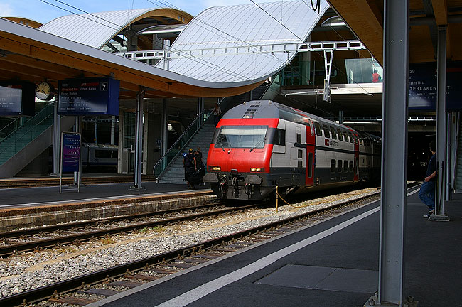 | 2006年5月24日〜26日 Svizzera ZermattとBern 鉄道の旅 Numero.2 (5月25日・26日) Zermatt(:ツェルマット)からSBB(:スイス連邦鉄道)でスイスの首都Bern(:ベルン)へ向かいます ![]() Zermattからしばらくはこういった渓谷をぬって 列車は進んでいきます ![]() Bern駅到着 駅舎が最近新しくなったらしく 非常にモダンなデザインでした スイスに来てから一貫して持っていた感想ですが 公共の施設がとてもきれいでした イタリアに比べ ゴミも落書きなども少ない印象でした ![]() さっそくホテルにチェックインを済ませ ちょっと休憩をしたら 街を歩きます ここは国会議事堂前の広場 地面に穴があいただけの面白い噴水で プログラムで様々なリズムを刻み水が噴出します 余談ですがこれは福岡のキャナルシティ博多にあるものと とても似ていますね ![]() ベルンの街はひらがなの『つ』の字のように曲がったアーレ川の中にあります 川と街の高低差はかなりあり 急な坂道や階段が多いため こうしてケーブルカーも運行されています ![]() アーレ川にかかる橋から見る大聖堂 空はすこしどんより でもおかげで暑くなく(少し肌寒いほどでしたが)快適でした ![]() 街を歩きます この通りにはおそらくベルンを表したり ゆかりのある紋章や図柄の旗が立てられていました ![]() 路面電車が便利に整備されているベルンの街 規制がしっかりされているのか路上駐車も全くと言っていいほどありません ![]() ![]() ![]() ![]() この晩食べた夕食 ひとり一皿ですが 量は十分 おなかいっぱいになりました スイスワインと一緒に楽しい夜を過ごしました 残念ながらこのときの料理名も失念,,, ![]() 一晩あけたベルンは昨日と同じような少し曇ったお天気 今回のベルンでの宿泊ホテルはKreuz Bern Swiss Quality Hotel 最近改装されたばかりらしく非常にきれいでした ロビーにはセルフサービスでコーヒーやお茶を飲めるコーナーがあったり ジムでトレーニングできたり 屋上に上がれたりとなかなか満足でした 今日は 夕方 ミラノへ戻る列車に乗ります それまで中世のままのような美しい街を散歩しましょう ![]() ベルンのTram(:路面電車) ![]() とても風情のある町並み 石畳も美しいです ![]() アーレ川沿いを歩きます 川のこちら側がベルン市街地 向こうに見える橋の高さが市街地の高さです 高低差を実感できる一枚 昨日は入らなかった大聖堂に入ってみることにしました ひと際高い鐘楼が目をひきます ![]() 大聖堂内部の荘厳な雰囲気 さてさて そろそろ列車の時間も近づいてきました ベルン駅へいくことにします ![]() ベルン駅は お店も充実しており スーパーやテイクアウトのファーストフードなど いろいろなお店が地下に並んでいます 残ったスイスフランを消費すべく お土産を買ったりして 列車までの時間を過ごすことにしました ![]() ![]() ちなみにこれがスイスフラン紙幣 10スイスフラン札は建築家Le Corbusier(:ル コルビジェ) 20スイスフラン札は作曲家Arthur Honegger(:アルテュール オネゲル) 100スイスフラン札は彫刻家Alberto Giacometti(:アルベルト ジャコメッティ) 買い物を終え ホームで列車を待っていました 少し早めに駅に着いていたので 各地へ行くいろいろな列車を見ることができました そんな中 日本の車両にもあったらいいのにな と思ったのがこちら 自転車用のハンガーが設置されている車両 どうやって自転車が吊るしてあるかと言うと,,, ![]() こんな風に前輪をバーに引っ掛けて吊るしているようです 日本の首都圏では一般利用者が多すぎて採用しにくいものなのかもしれませんが これは鉄道と自転車を複合的に利用することで エコに市民の行動半径を広げることができる良い例だと思います ![]() 表示板が私たちの乗る列車を表示しました 17:39発MILANO行き 次にいつスイスを訪れられるかわかりませんが 本当になにもかも美しい国でした 名残惜しい気持ちを抱きながら列車にのりベルンをあとにしました 私たちの乗った列車 CISALPINO EC135は時間通りに出発し 21:35 MILANO Centraleへ到着列車を降りたあと 振り返って撮った写真がこれですが 運転士さんが そんな私を見つけて 消えていた真ん中のライトをつけてくれました その後 親指を立ててポーズ(笑) おそらくスイス人かイタリア人の方だと思いますが 旅の最後に そんな陽気で親切な一面を感じることができ 気持ちの良い終わりを向かえることがでたのでした <-- Numero.1へ戻る リストへ戻る |