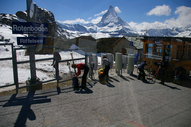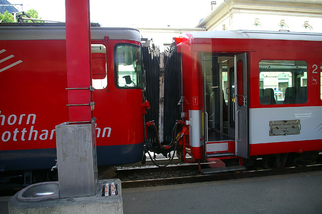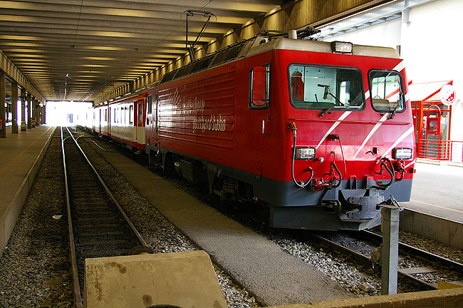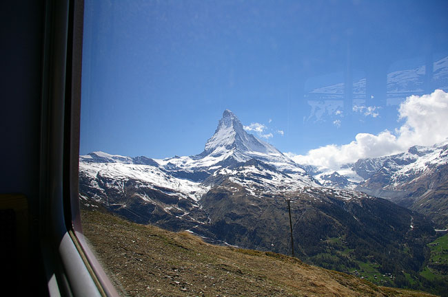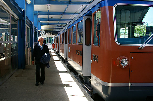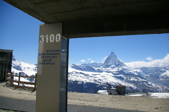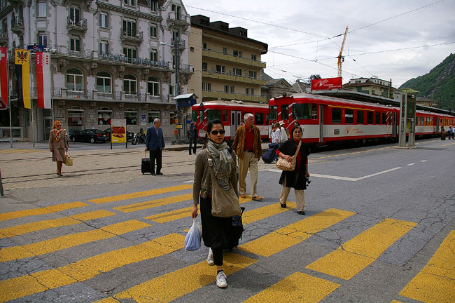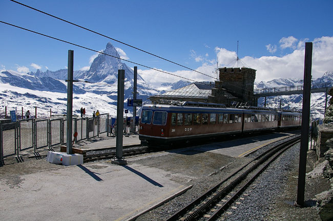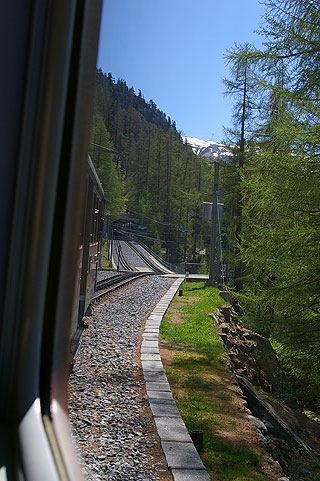 | 2006年5月24日〜26日 Svizzera ZermattとBern 鉄道の旅 Numero.1 (5月24日・25日) 5月24日から2泊3日でSvizzera(:ズヴィッツェラ :スイス)へ鉄道の旅をしてきました まず Milano Centrale(:ミラーノ チェントラーレ :ミラノ中央駅)からCISALPINO BORRMEO(:チザルピーノ ボロッメォ)でスイス南部の交通の要所 Brig(:ブリグ)へ行き そこから鉄道を乗り換えMatterhorn(:Cervino[伊] :マッターホルン)麓の街Zermatt(:ツェルマット)へ向かいました ![]() 5月24日午前10時30分発のCISARPINO BOROMMEOで出発です 列車はBasilea(:Basel :バーゼル)行き 国境を越えすぐに停まるBrigで乗り換えです ![]() イタリア側最後の停車駅 Domodossola(:ドモドッソーラ) ここから更に北上し 1982年上越新幹線の大清水トンネル(22,221m)ができるまでは世界最長だった全長19,823mの Traforo del Sempione(:Simplon Tunnel :シンプロントンネル) を通ってスイスに入り トンネルを出てすぐの街Brigで列車を降ります ![]() BrigでMatterhorn Gotthard Bahn(:マッターホルン・ゴッタルド鉄道)に乗り換えです きれいな赤い列車でZermattまで行きましょう ![]() 座席についているテーブルにあった地図 観光列車としてしっかり整備されています ![]() このMatterhorn Gotthard Bahn(:マッターホルン・ゴッタルド鉄道)は驚いたことに日本語の車内アナウンスがありました いかに日本からの観光客が多いかという事と この地域が観光で成り立っているのかという事を物語っていますね ![]() ![]() Zermatt到着です ![]() ちゃんと『ようこそ』と書いてありました ![]() まずはホテルにチェックインし その後 Gornergrat Bahn(ゴルナーグラート鉄道)に乗り Zermatt(標高1,605m)よりも更に標高の高いGornergrat行き そこからMatterhornを望むことにしましょう ![]() Gornergrat BahnのZermatt駅にて これから乗車します ![]() かなりの急勾配を上っていきます ![]() あ マッターホルンが見えました! そんな絶景のなか 登山鉄道はどんどん登っていきます ![]() !!! 何かいます! ![]() 車内は清潔で快適です 窓は上から下へスライド式に下げて開けることができ 外の空気に触れることかできます 折りたたみ式の椅子にもなっていおり 多客期を想像させます ![]() 途中駅で降りて行ったスキー客 ![]() 頂上のGornergrat(:ゴルナグラート)駅が見えてきました 通常の鉄道では線路は左右2本ですが これはその間に歯のついたレールがあります ![]() これは急勾配で滑らないようにスイス人Roman Abt(:ローマン アプト)の発明したAbt system railway(:アプト式鉄道) Abtと書きますが ドイツ語読みではアブ(bu)トではなく アプ(pu)トと読むそうです ![]() Gornergrat駅に到着しました すばらしい眺めです! しかし よくここまで鉄道を敷いたものですね 『ようこそ標高3,100m地点へ』 それぞれ 一人で来られていたおじさん達 大きなカメラを構え 降りていく登山鉄道を熱心に撮影していましたさすがに寒かった頂上駅では 家族でのマッターホルン記念撮影 その後 きっちり時間通りにやってくる 下りの電車に乗りZremattへ降りました そして食べた晩ご飯がこれら ![]() ![]() ![]() ![]() メニューの名前は残念ながら失念してしまいましたが 本当に美味しかったです お店はZermatt駅前 店内には来店されたのか なんと海部元首相の書が飾られていました 満腹満腹で就寝 ![]() 翌日 Bern(:ベルン)への列車に乗る前に Zermattに残る旧市街の佇まいを散歩しました ![]() その中の倉庫は奈良の正倉院のような高床式で 下部の脚に載せている部分には円形に削られた石板が挟まれており ネズミ返しになっています ![]() ふと見上げると 白く輝くマッターホルンが私たちを見下ろします ![]() アルプルの少女ハイジから 私たち日本人がイメージしていた風景のようです 鮮やかなポピーの花畑![]() Zermattの目抜き通りに戻ってきました お土産でも見ながら駅に向かうことにしましょう