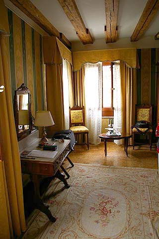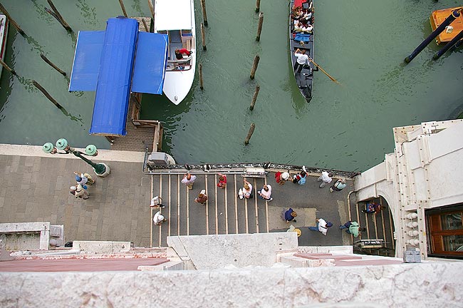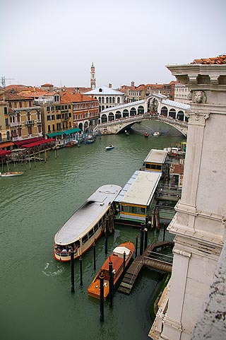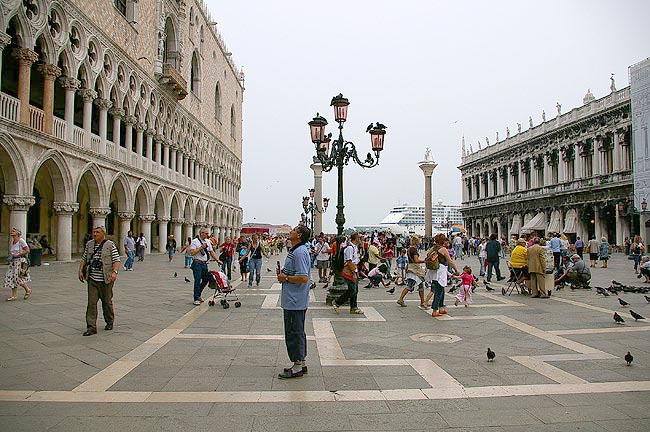 | 2006年5月28日〜29日 ヴェニスへ 私(管理人)の両親が2週間の予定でイタリアに旅行に来ていましたが そろそろその旅も終盤です 私の両親にはシェークスピアの"ヴェニスの商人"でお馴染みだったヴェニス,,, もといVenezia(:ヴェネツィア)へ1泊してきました ![]() MilanoからAutostrada A4を一気にVeneziaまで行き Tronchetto(:トロンケット)の駐車場に車をいれます そして水上バスで予約してあるPonte di Rialto(:リアルト橋)そばの Palazzo Bembo(:パラッツォ ベンボ)へ ![]() Palazzo Bemboは本当にPonte di Rialtoの水上バス停から徒歩1分ほどでした まったくホテル然としたたたずまいではなく 何度も行き過ぎて 「地図が間違ってるのかな,,,,」と思いながら探しました 果たして地図も住所も間違っておらず 写真のような看板1枚のPalazzo Bemboを見つけました ですが Citofono(:チトーフォノ :インターホン)を押して話さないと中に入れないので 外国が初めての方などには 少し緊張する宿かもしれません ![]() ![]() チェックインし部屋に通されました 雰囲気に圧倒されます 昔の貴族の館を改装したと思われる客室はゴージャスでした 部屋のシャンデリアはもちろん di Murano(:ムラーノ島製のヴェネツィアングラス) ![]() Canal Grande(:大運河)沿いの部屋からの眺めは,,,, ![]() Ponte di Rialtoがバッチリ眺められる絶好のシテュエーション ! ![]() 下を見ると こんな感じ たまに私たちのいる このパラッツォを撮影している人もいます 撮影される側の建物に滞在できるというのは 希少な経験だったと思います ![]() Piazza San Marco(:サン マルコ広場)へ行ってみるといつものように大勢の観光客が写真を撮り ハトに餌をやっています でもその中で 今回私がVenezia的な光景として印象に残ったのがこちら 上を見上げている男性,,ではなくその後ろ ![]() 巨大な豪華客船です 進行方向からして Veneziaを出港したところとみられますが 次はどこへ寄港するのでしょう,,,,