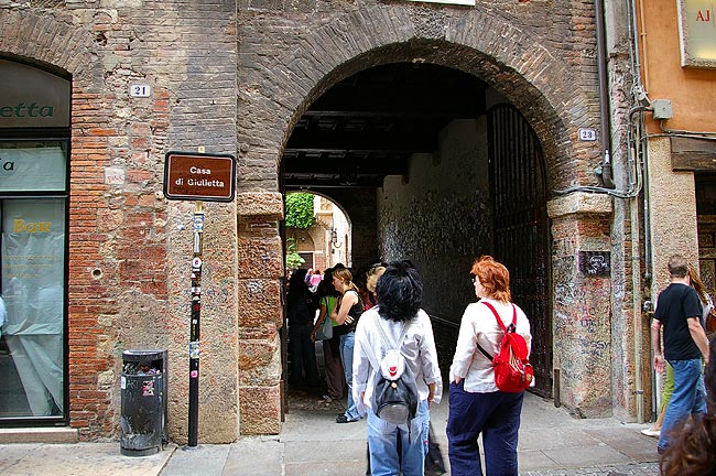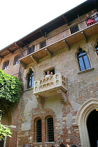 夕食はやっぱり魚介類 海沿いのRistoranteでたっぷり食べて 美味しい白ワインを飲みました![]() 家族での食事は楽しくて美味しく 少し酔っぱらって ホテルへ帰りました ベットに倒れ込むようにして 就寝 翌朝 お土産など 少し買い物をし 散歩をして Veneziaをあとにすることにしました VeneziaとMilanoの間にあり 1泊するまでもないけど ちょっと寄るには最高の街といえばVerona(:ヴェローナ)ですこれまでもVeneziaの行き帰りに何度か寄って美しい街を散歩しましたが 今回も例に漏れず寄ることにしました ![]() 目抜き通りへの入り口 ![]() Veronaと言えばここです Casa di Giulietta(:ジュリエッタの家) 14世紀のこの街を舞台にしたシェークスピアの戯曲"Romeo and Juliet(:ロミオとジュリエット)に登場する かの有名なジュリエット(イタリア語ではGiulietta(:ジュリエッタ))バルコニーがある家です ![]() 入口を入るとある世界中の恋人たちの願いがこめられた落書きやガムでつけられた紙 ![]() これがあのバルコニー ここから見るバルコニーと自分との距離が 作中のモンタギュー家とキャピュレット家を象徴しているんですね きっと 日は高いので どうも時間感覚が狂ってしまうのですが 気付けば夕方 中世のロマンを感じながらMilanoへ帰りました 今回は早足でしたが "ヴェニスの商人"や"ロミオとジュリエット"の舞台となる街を訪れ 意図せず 中世の歴史やロマンを感じるというシェークスピア旅行になりました こういった雰囲気が身近にあるというのがイタリアという国の大きな魅力のひとつですね リストへ戻る |