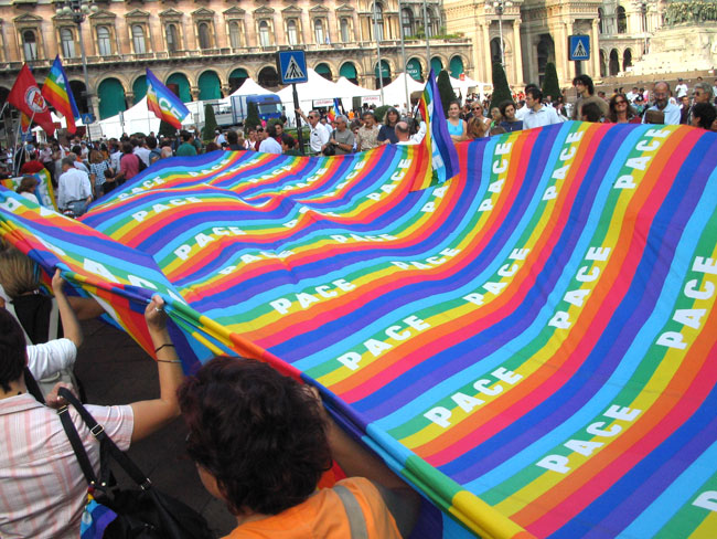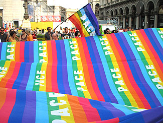 もうあれから3年たちました 現在(9月11日の時点)イタリア人女性2人がイラクで拘束されていることもあり 大きなPACE(Peace)デモがありました 偶然出くわしたこのデモを激写しました