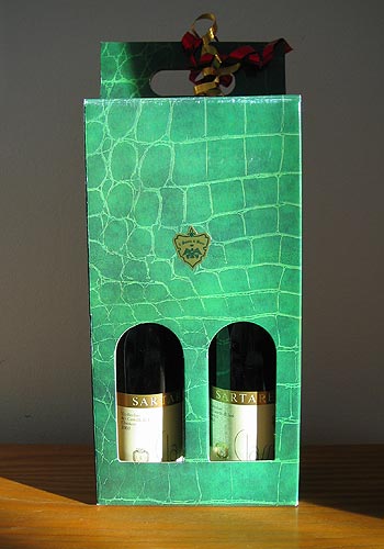 これです 立派な箱に入ったdue bottiglie di vino bianco ! (:ヴィーノ :ワイン) (:ビアンコ :白)
